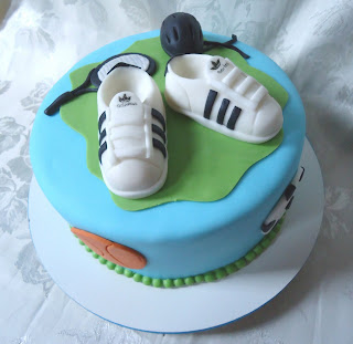 Bolo para um professor de educação física. Com tênis confeccionado em pasta ameircana.